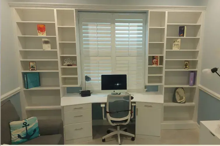 Our desks are not only practical but are designed to elevate your workspace aesthetically. We use high-quality, durable materials to ensure that your desk withstands daily use while maintaining its style and finish. Built-in storage solutions like drawers, shelving, and cable management systems help reduce clutter and keep your workspace organized. By choosing our custom in-home office desks, you create a productive and enjoyable environment that promotes focus and creativity, transforming any area of your home into a functional, stylish office.